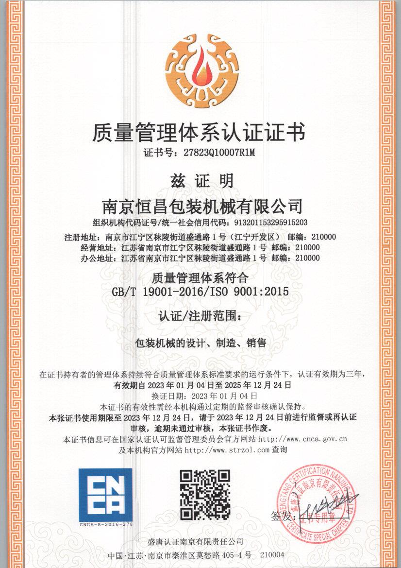 南京恒昌包裝機械有限公司致力于液體包裝系統整線方案的設計制造安裝,其前身為南京恒昌輕工機械有限公司。