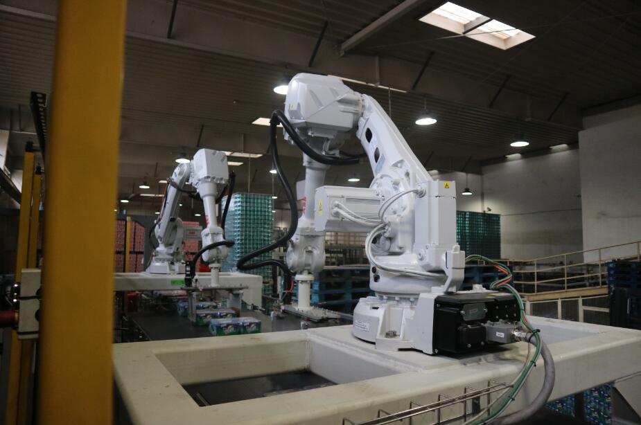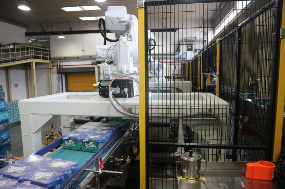 此設備是南京恒昌根據客戶的實際需求進行定制的,滿足現有普罐9箱、10箱花型、SLEEK CAN、MINI SLEEK CAN13箱花型碼垛需求,并且具備未來2*6、3*4、3*5花型升級功能和生產能力,單臺能力達到60箱/分鐘。設備主體采用ABB智能機器手,通過 SEW伺服電機帶動雙向絲桿,來驅動固定在2根進口導軌上的夾板,對包型夾護后由機器人來進行位移分道,轉向。設備運行穩定,高效,占用空間小,減少了對箱包的碰撞和磨損。